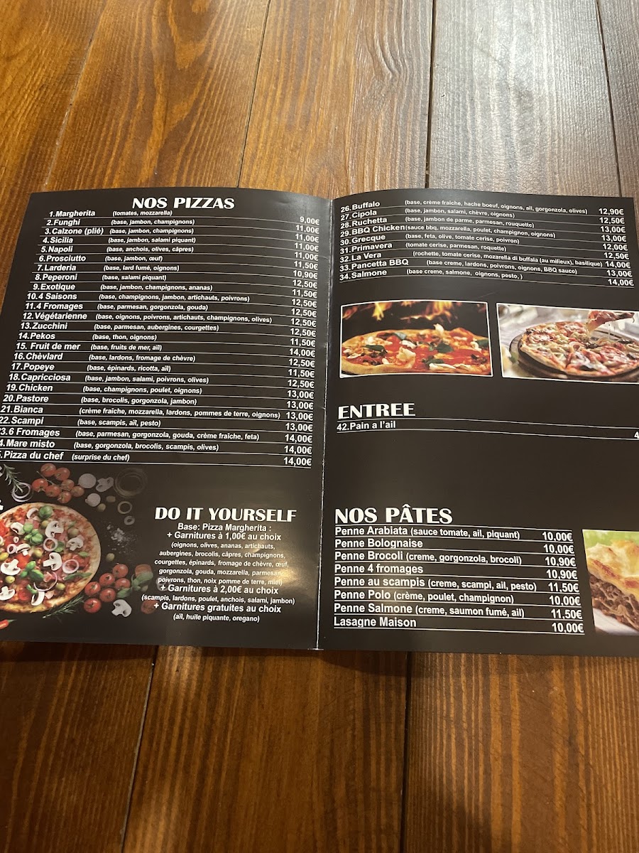 The menu reflects a clear focus on comfort flavors balanced with playful creativity, making it easy to understand why this place appeals to a wide range of diners. Pizzas are built around generous toppings and familiar combinations, yet they avoid feeling generic thanks to thoughtful ingredient pairing and confident execution. BBQ Chicken Pizza with Shrimps stands out as a bold option, combining smoky barbecue notes with tender chicken and the surprising addition of shrimp, which adds sweetness and texture without overpowering the base. It feels designed for diners who enjoy rich, layered flavors and aren’t afraid of unconventional combinations. On the more classic side, La Meilleure Pizza de la Ville lives up to its ambitious name by focusing on balance and quality, highlighting well-chosen ingredients rather than excess. It represents the restaurant’s core identity and works as a safe but satisfying choice for first-time visitors. To finish, Pizza Nutella adds a playful, indulgent touch to the menu, turning pizza into a dessert without losing its charm, thanks to its simplicity and crowd-pleasing sweetness. Overall, the menu feels cohesive and intentional, offering enough variety to stay interesting while remaining firmly centered on pizza done with personality and confidence.